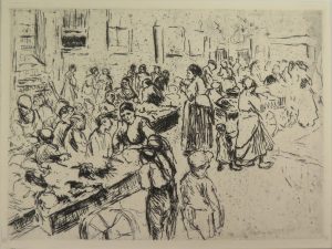 Amsterdamer Judengasse, [1905]. Etching, 14,2 x 19,5 cm, laid paper 18 x 22,8 cm; not signed, with lettered silky paper. Under passe-partout. Old traces in lower margin. Good copy.