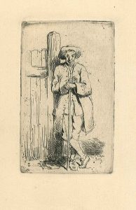 Rarissime eau-forte figurant un homme en costume XVIIIe s., debout près d'une palissade. D'après une note (photocopie) du peintre Albert Delstanche, petit-fils de J.-B. Madou, il s'agit de l'"unique eau-forte gravée par Madou. Le cuivre est en ma possession et cette épreuve a été tirée par moi-même (...) Le croquis qui a servi de point de départ à cette petite estampe m'appartient". Madou réalisa par ailleurs de très nombreuses lithographies, des dessins et des peintures.