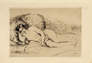 Femme nue couchée, tournée à gauche, 1906. Eau-forte, 13,8 x 19,7 cm, vergé 17,5 x 26,5 cm; signée dans le coin inf. dr. du cuivre, serpente imprimée de la "Gazette des Beaux-Arts". Sous passe-partout. Minimes rouss. touchant le bord inf. sinon...