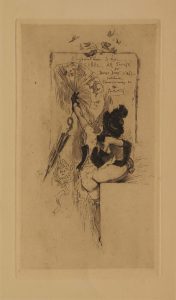 Le doigt dans l'oeil II, 1882. Hélio retouchée à la roulette, 19 x 10,5 cm, vergé 41,5 x 32 cm. Sous passe-partout, verre et cadre (désencadrée). Sujet lég. insolé, marges inégalement brunies.