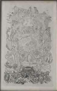 Le théâtre gaillard I, 1865. Eau-forte et pointe sèche, 18,5 x 11 cm, chine 25 x 17,5 cm. Montée par le bord sup. sous passe-partout, verre et cadre (désencadrée). Fraîche.