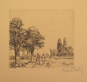 Op wandel, 8,5 x 9,7 cm. - Het kruisbeeld, 7,7 x 9,8 cm.