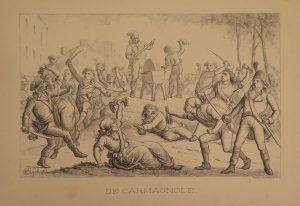 Zeldzaam album met 96 platen ontworpen en op steen gebracht door W.P. Van Geldorp met voorstellingen van het leven van Diogenes e.a. voorgesteld in 12 afleveringen met per aflevering een verklaring der platen.