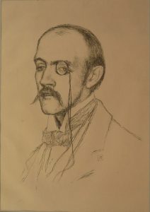[Henri de Régnier], c. 1898. Lithographie en gris noir, +/- 22 x 17 cm, vergé Van Gelder 28,5 x 19,7 cm à vue; monogr. dans la pierre. Sous passe-partout, verre et cadre (non désencadrée). Bonne condition.