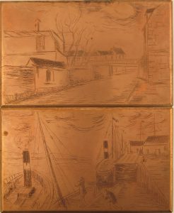 8 cuivres originaux, s.d., c. 10 x 16 cm; non signés. Conservés sous pochettes en papier anciennement num. et titrées. Bonne condition.