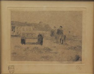 Les bateliers, Malines, s.d. Eau-forte et pointe sèche, 11,1 x 15,5 cm, japon 14,5 x 19 cm; just. 5/52, signée au cachet "Masque". Sous passe-partout, verre et cadre (non désencadrée).