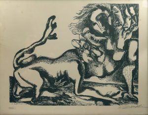 [Combat avec l'hydre de Lerne, 1960]. Lithographie, 45 x 58 cm, vélin 52 x 68 cm; signée dans la pierre, signée et just. XXXIX/L à la mine de plomb. Sous verre et cadre (non désencadrée). Min. souill., très pâle mouill. dans la partie g.