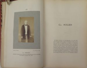 Rare ouvr. ill. de 12 portraits photographiques originaux, tous par Ghémar frères qui possédaient à l'époque le plus important atelier photographique de Bruxelles. Importante source iconographique, avec les portraits des rois Léopold Ier de Belgique et Guillaume III de Hollande, Lord Brougham, Ch. Rogier, le prince de Ligne, A.N. Fontainas, D.J.L. Vervoort, Corr-Vander Maeren, L.A. Garnier-Pagès, Ch. De Kerchove, E. Prévinaire et A. Couvreur, tous membres à titres divers de cette association dont le but visait à la création des Etats Unis d'Europe. Dédic. aut.s. à Mme Edouard Cardinaël "née Louise van der Stichel".