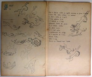 Carnet de travail, s.d., papier quadrillé, in-folio, demi-percal. noire, conservé dans une reliure de registre, demi-toile grise à coins.