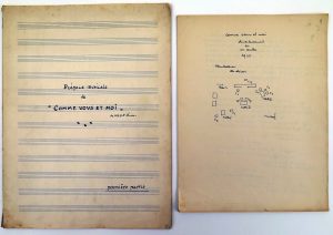 "Comme vous et moi. Divertissement en un acte 1925". Copie manuscrite anonyme (probablement pas de la main de O.-J. Périer, peut-être de la main de Max Janlet), 19 pp. sur 19 ff., in-4 et manuscrit musical titré "Préface musicale de "Comme vous...