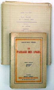 "Les Anges et l'Homme assis. Roman ou poëme. 1924-1925". Manuscrit en grande partie aut. contenant aussi des ff. dactyl. avec corrections aut., signé et localisé "Bruxelles-Knocke, Juin 1924-septembre 1925" in fine, [4]-194-[2 bl.] pp. (pagin....