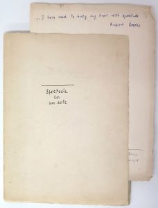 "Spectacle en un acte". Manuscrit aut.s. et daté "Bruxelles - Knocke - Paris, Août 1924-Mai 1925", [28] pp. avec 2 paginations différentes, in-8, papier vergé, sous couv. titrée comme supra. Dern. ff. tachés dans la marge inf. Mouture du texte...