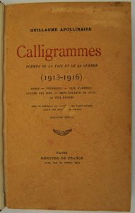 Calligrammes. Poèmes de la paix et de la guerre (1913-1916). Ondes. Étendards. Case d'Armons. Lueurs des tirs. Obus couleur de lune. La tête étoilée. Avec un portrait de l'auteur par Pablo Picasso gravé sur bois par R. Jaudon. Deuxième édition.