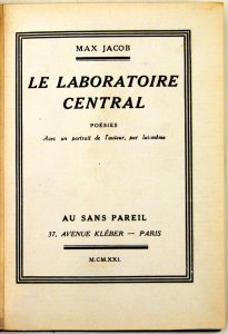 âmes en peine. Ibid., NRF, (1927), br. (couv. abîmée). Edit. orig., ex. du s.p. - Mélot du Dy - Mythologies. Brux., Edit. littéraires de l'Expansion belge, 1921, br. (bruniss. sur les 1er et dern. ff.). - Paulhan, J. - La guérison sévère. Paris, NRF, 1925, br. Edit. orig., 1/91 h.c. n. sur vélin. - Mention d'appart. : Alleweireldt, G. - En guitarisant. Paris, Jouaust, 1885 [relié avec] Fadeux, J. - Les chants de la lyre. Brux., Decq, Vanbuggenhoudt, 1884, bradel percal. bleue (dos bruni). - Aragon, L. - Feu de joie. Avec un dessin de P. Picasso. Paris, Au Sans Pareil, 1920, br. (couv. abîmée). Edit. orig., ex. n. sur vergé bouffant. - [Hérédia, J.M. de - Les trophées]. (Paris, Lemerre), s.d., demi-chagrin bleu nuit à coins (titre manquant). - Jacob, M. - Le laboratoire central. Avec un portrait de l'auteur par lui-même. Paris, Au Sans Pareil, 1921, chagrin brun (traces de cire inadéquate, dos passé). Edit. orig., 1/15 sur hollande. - Kipling, R. - Chansons de la chambrée. Trad. de A. Savine et M. Georges-Michel. Avant-propos de P. Mac Orlan. Ill. de Daragnès. Paris, L'Edition française illustrée, 1920, chagrin cerise (lég. mouill. dans la partie inf.), dos à 5 nerfs, couv. cons. Ex. n. sur vélin teinté. - Lalou, M. - Méghadouta de Kalidasa. Paris, Au Sans Pareil, (1921), br. (couv. défr., détachée). Ex. n. - Larbaud, V. - A.O. Barnabooth. Ses oeuvres complètes (...) son journal intime. 2e édition. Paris, NRF, 1913, demi-chagrin rouge à coins, dos à 5 nerfs (lég. frotté), t. dorée, couv. cons. (défr.). - Merrill, St. - Les quatre saisons. 2e édit. Paris, Mercure de France, 1900, br. (abîmé). - Shakespeare, W. - La nuit des rois. Trad. de Th. Lascaris. Paris, NRF, "Répertoire du Vieux-Colombier", (1920), br. (couv. défr.). - Stevenson, R.-L. - Enlevé ! Trad. et préface d'A. Savine. 6e édit. Paris, Stock, 1922, br. (couv. souillée). - Tagore, R. - L'offrande lyrique. Trad. d'A. Gide. Paris, NRF, 1914, br. - Id. - Le jardinier d'amour. Trad. de H. Mirabaud-Thorens. 5e édit. Paris, NRF, 1920, br. - Tolstoi, L. - Guerre et paix. Paris, Stock, 1921, 2 vol., br. - 2 ouvr. d'auteurs antiques (Sophocle, Euripide).