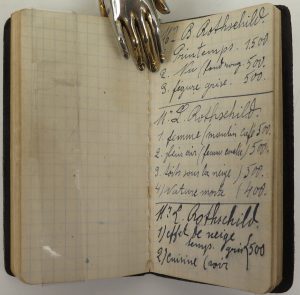 Précieux carnet du peintre Jean Brusselmans (1884-1953), contenant une liste de 29 oeuvres avec les noms des collectionneurs (les Rothschild, Buyle, Van Haelen, E. Isaÿe, le docteur Collet...) et (le plus souvent) les prix d'achat, oscillant entre 100 frs pour une étude de nu et 1500 frs pour une nature morte à la nappe rouge. Provenance : Suzanne Delevoy dont l'époux, Robert L. Delevoy, établit et publia en 1972 le catalogue raisonné de l'oeuvre de Brusselmans.