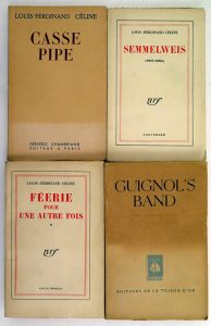 Guignol's band. (Belgique), Edit. de la Toison d'or, cop. 1944 (couv. part. brunie). Edit. belge parue la même année que l'orig. - ID. - Casse pipe. Paris, Frédéric Chambriand [Pierre Monnier], (déc. 1949). Edit. originale. - ID. - Semmelweis...