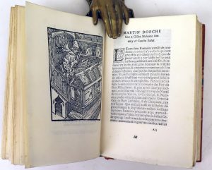 Typographic facsimiles of the (then) unique BnF copies of “Le triumphe” (Lyon, F. Juste, 1539) and “Le pourpoint” (Paris, A. Lotrian, 1540) by A. de Montaiglon (1824-1895). One of the 4 copies on “parchemin” (n. 2). Bookpl. Am. Berton, blind stamp Detlef Mauss.
