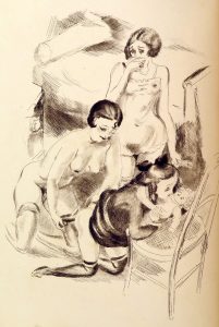 Edit. ill. in texto de vignettes en rose par André Collot. Tirage à 150 ex. num. sur vélin d'Arches (+ 1 ex. sur japon). Un des 90 de tête (n. 6) contenant la suite des 20 eaux-fortes libres de Berthommé Saint-André déjà publiée vers 1929 pour accompagner l'originale (1926). "Il est probable que cette édition a été faite pour écouler des suites de gravures de Berthommé Saint-André qui restaient invendues (...)" (Dutel). Ex-libris eroticis.