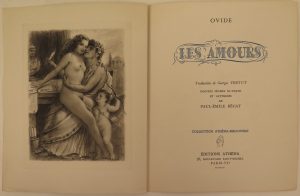 Les amours. Traduction de Georges Vertut. Pointes sèches in-texte et lettrines de Paul-Emile Bécat. 13 illustrations galantes en noir : 1 compos. sur la couv. et 12 hors-texte compris dans la pagin. dont 1 frontisp. Tirage à 997 ex. num. Ex....