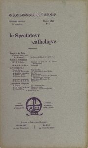 Le Spectateur catholique. Mensuel de science, d'art et de jugement religieux. Dir. : Edmond De Bruijn.