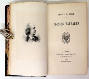 Edition originale sans grand papier. Ex. enrichi d'un portrait du poète par Rajon en 2 états (sur vélin avec la lettre et sur chine avant la lettre) et d'une dédic. aut.s. à Charles-Augustin Sainte-Beuve. Qqs notes  mss. (aut. par Sainte-Beuve ?) aux pp. 237 et 277 ("Aux morts"). Sainte-Beuve donna une élogieuse critique de ce recueil du poète parnassien dans ses "Nouveaux lundis". Ex-libris G. Bengesco et ex-libris gravé HE non identifié.