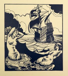 L'île des sirènes. Conte inédit illustré par Ermengem. Edition originale tirée à 17 ex. num. seulement. Un des 6 sur japon simili (2e papier, n. 4) ill. de 4 grands bois sur divers papiers compris dans la pagin. (un bruni); en outre, qqs...