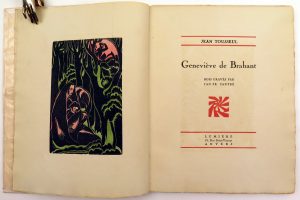 Geneviève de Brabant. Bois gravés par Jan Fr. Cantré. Edition originale illustrée de 15 bois (frontisp., 7 pl. pages, 7 lettrines). Tirage à 206 ex. num. dont 25 h.c. Un des 35 de tête (après 1 ex. unique) sur hollande Van Gelder, signés par...
