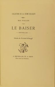 L'amour fantasque. Brux., Boitte, 1883, 2 ex., in-16, br. (part. débr., couv. défr.). Un ex. avec dédic. aut.s. à Iwan [Gilkin] "son "antithétique" mais dévoué de coeur". - Le baiser. Nouvelles. Dessin de Fernand Khnopff. Brux., Paris, "Collection de la Jeune Belgique", (1893), in-12, br. (couv. défr.). 1/290 non n. sur vélin avec le frontisp. sur vélin teinté (lég. bruni). - Jeanne Bijou. Pièce en trois actes (...) 6 février 1886. Brux., chez tous les libraires, 1886, in-8 à témoins, demi-chagrin bleu foncé à coins (min. frottements), dos à 5 nerfs perlés dorés (lég. frotté), t. dorée, couv. cons. (2 manques). 1/20 de tête n. sur hollande (après 1 ex. unique sur japon, paraphé par l'auteur). - Poison. Un acte (...) 26 janvier 1888. Brux., Vve Monnom, 1888, in-8, demi-maroquin ivoire à coins signé J. Weckesser (souillé), dos à 5 nerfs (lég. bruni), t. dorée, couv. cons. 1/10 de tête n. sur japon. Dédic. aut.s. à Hubert van Dÿk. - La flûte à Siebel. Brux., Lacomblez, 1891, in-8, br. (couv. lég. défr.). 1/75 de tête n. sur Van Gelder.