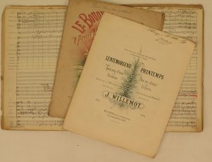 Verzameling handgeschreven en gedrukte partituren.