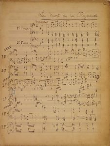 (b) Gedrukte partituren: Feremans, G. - Communielied van G. Feremans met handgeschr. en gesign. opdracht aan Peter Aerts. - Benoit, P. - De Rhijn. Gedicht van Julius de Geyter in volkstrant getoonzet, 1889. Met handgeschr. en gesign. opdracht van P. Benoit. - Huberti, G. - Een laatste zonnestraal. Lijrische gedicht door E. Hiel. Met handgeschr. en gesign. opdracht van G. Huberti. - Mortelmans, L. - Wiegelied. Antw., G. Faes, s.d. (PN 19). Bijgevoegd: enkele handgeschreven partituren zonder vermelding van componist.