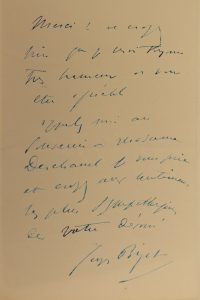 "Mille remerciemens pour toutes vos bonnes et affectueuses félicitations (...)". Il s'agit probablement de l'opéra en 3 actes "Les Pêcheurs de perles", créé le 30 septembre 1863 au Théâtre-Lyrique.