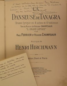 La danseuse de Tanagra. Drame lyrique en 4 actes et 5 tableaux. Tiré du roman de Félicien Champsaur "L'orgie latine" par Paul Ferrier et Félicien Champsaur. Fully annotated music score (by a conductor ?) of the music drama "La danseuse de Tanagra"...