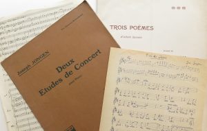 Verzameling handgeschreven en gedrukte partituren. Handgeschreven partituren : "Fanfare", 10/05/1945, 3 p. op 2 bladen. - "Bal des fleurs", s.d., 2 p. op 1 blad. J. Jongen (1873-1953) was een Belgische organist en componist. Gedrukte partituren :...