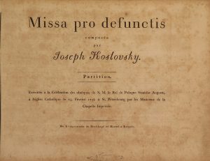 Printed music composed by the Russian-Polish composer O.J. Kozlovsky (1757-1831). Famous Requiem Mass in E flat minor "Missa pro defunctis" for the death of the Polish king Stanisław August Poniatowski, commissioned by the king himself before his death and performed on February 25, 1798 in St Petersburg.