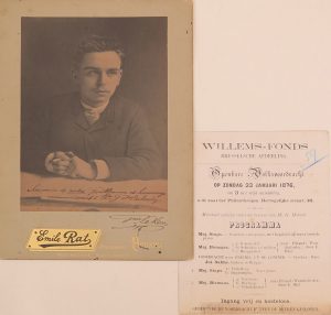 We join : Concert program addressed to G. Huberti, with stamp. G. Huberti was a Belgian composer linked to the Flemish movement. In that time he was director of the Conservatory of Music in Mons. (2 items)