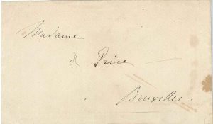 Lettre aut.s. à Madame Price (probablement l'épouse de Prisse, adjudant du roi Léopold I), Weimar, 21/12/1854, 2 pp. sur 1 f., in-12, enveloppe.