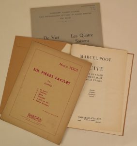 Verzameling proefdrukken en gedrukte muziekpartituren van Marcel Poot en Robert Herberigs. Marcel Poot : 1e en 2e proefdruk van "Ballade pour violoncelle et piano" met aanduidingen en verbeteringen in potlood (10/12/1953), in originele omslag van...
