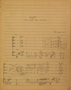 2. "Quintette pour Piano, 2 violons, alto et violoncelle", 1912-13, 57 pp., black cloth binding (somewhat discolored). Manuscript in black ink with annotations in blue pencil. Chamber piano quintet, Op. 5 for piano and strings. Our copy seems to be a working-copy: several passages have been crossed or cut out. Signatures of the composer on 2 different pages dated "1er Fév. 1913" and "15 juin 1912".