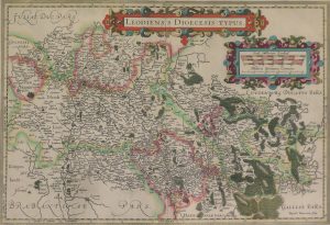 Engraved by Baptist Doetecum. East to the top. Showing the Princebishopric of Liège, Limburg and part of Luxemburg, with the River Maas up to Roermond.
