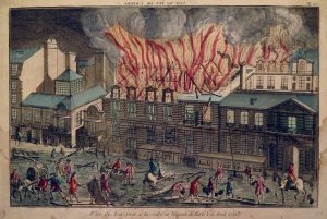 Vue de la ville de Dunquerque. Augsburg, Probst, +/- 32 x 42 cm. Belle planche. - Vue perspective du Bassin et Parc de la Marine du Havre. - Vue du feu prit à la Salle de l'Opéra de Paris le 6 Avril 1763. - Vue d'un feu d'artifice tiré à Paris. - Vue perspective de revue de la maison du roy Cavalerie qui se fait tous les 3 ans au Trou d'Enfer à 4 lieux de Paris. Paris, Basset.  - La porte St. Denis sortant de Paris (mouillures). - Décoration de Théâtre représentant les Jardins de Circe magicienne femme de Minos. Paris, Daumont.