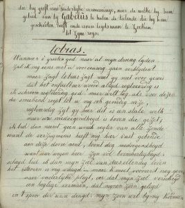 "Het dor wordt groeijende, onbepaelbare Gods voorzinnigheid in den lijdzamen ende goedertieren Patriarch Tobias (…)".