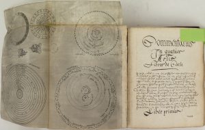 Voluminous and very interesting course of Aristotelian physics and metaphysics taught by the Benedictine monks Columbanus Parent and Antonius Chassé in the novitiate school of Saint-Amand Abbey (formerly Elnon Abbey), also known as St.-Amand-en-Pévèle (“in pabula”). Illustrated with 6 full-page engr. portraits, a folding engr. (on the death of Nicolas de Serin), 2 astronomical engr. (1 folding), 1 anatomical engr. (human eye) and 2 astronomical pen drawings. Portraits of the Capuchin Thomas Teneramundanus (Dendermonde) by Adr. Possemiers, of Carolus Casparus, Archbishop of Trier by F. Bouttats, of Dominicus Ottomanus, a son of the Turkish Emperor, converted in 1652, of Wolfgang of Bavaria, Christina of Sweden, and of Oliver Cromwel. Well worth comparing with the course manuscripts of Louvain University.