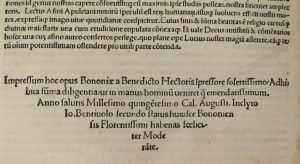 1st separate ed. of the "Asinus aureus" (The Golden Ass), the only Latin novel to survive in its entirety (including the famous story of Amor and Psyche). Also the 1st ed. of the extensive commentary by the Bolognese humanist Ph. Beroaldus (1453-1505). Copy with the 16-leaf "Tabula vocabulorum et historiarum", "printed later than the body of the book" (BMC). Woodcut mark at the end. Roman type. Capital spaces with guide-letters. Cont. marg. ms. notes throughout.