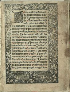 2nd recorded copy of this popular vernacular devotional booklet based on the mystical experiences of the Franciscan nun Magdalena von Freiburg (1407-1458). Woodcut mark at the end. Printed within decorative woodcut borders.