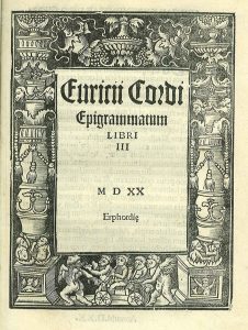 First ed. (reprint Berlin, 1892) of this work by the German Neo-Latin poet and Erfurt professor E. Cordus (1484-1535), remembered for some of his medical works, but foremost as a good Latin poet.