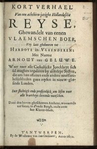 Kort verhael van een achthien-jarighe Hollandtsche reyse, ghewandelt van eenen Vlaemschen boer, vry laet ghebooren tot Hardoye in Vlaenderen (...) Waer naer alle catholijcke jonckheyt sich sal moghen reguleren by alderleye secten.