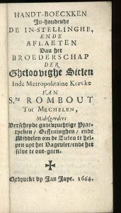 Handt-boecxken in-houdende de in-stellinghe, ende aflaeten van het Broederschap der gheloovighe Sielen inde Metropolitaine Kercke van Ste Rombout tot Mechelen.