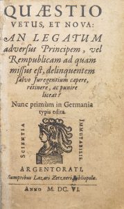 Quaestio vetus, et nova: an legatum adversus principem, vel rempublicam ad quam missus est, delinquentem salvo jure gentium capere, retinere, ac punire liceat?