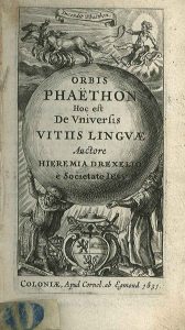 Orbis Phaeton hoc est De universis vitiis linguae. 1. Rather rare Cologne ed. Engr. ills : title and 23 full-page pl. Ref. VD-17 3:008243B. Bn-Opale plus. DBS III c. 193 nr. 11. Landwehr 253. 2. Later ed. (first 1624). Engr. ills : front. and 47...