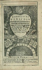 Goddelycke wenschen verlicht met sinnebeelden envierige uytspraken der out-vaders/ na-gevolgt de Latijnsche (...) door Iustus de Harduyn.